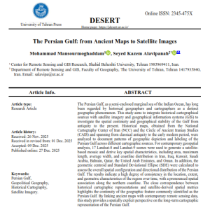 با توجه به اهمیت استراتژیک و ژئوپلتیک خلیج فارس و ضرورت مطالعه نقشههای تاریخی و تصاویر ماهوارهای در شناسایی پدیدههای جغرافیایی و همچمین نام اصیل ایرانی این پهنه آبی و فقدان پژوهشی جامع در این خصوص به زبان انگلیسی ، برای اولین بار، مطالعهای در خصوص نقشههای تاریخی خلیج فارس در ترکیب با تصاویر ماهوارهای