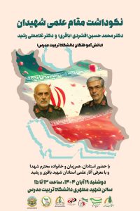مراسم نکوداشت مقام علمی شهیدان دکتر محمد حسین افشردی (باقری) و دکتر غلامعلی رشید دانش آموختگان دانشگاه تربیت مدرس برگزار می شود. زمان: دوشنبه 19 آبان 1404 ساعت 13 الی 15مکان: سالن شهید مطهری دانشگاه تربیت مدرس